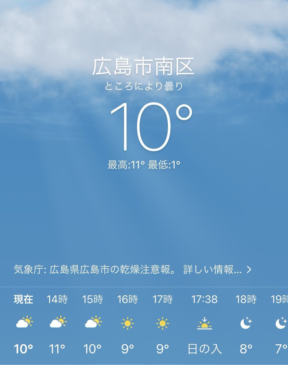 1/31(月)広島市南区の天気は晴れ☀️気持ちの良い天気、素敵な空が広がっています♪
