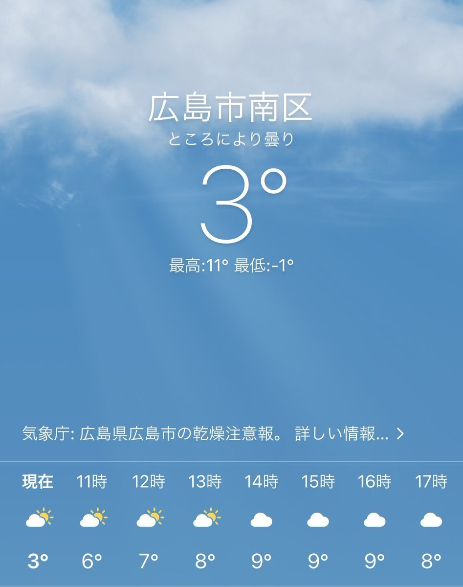 2/7(月)広島市南区の天気は晴れ(*´ω`*)