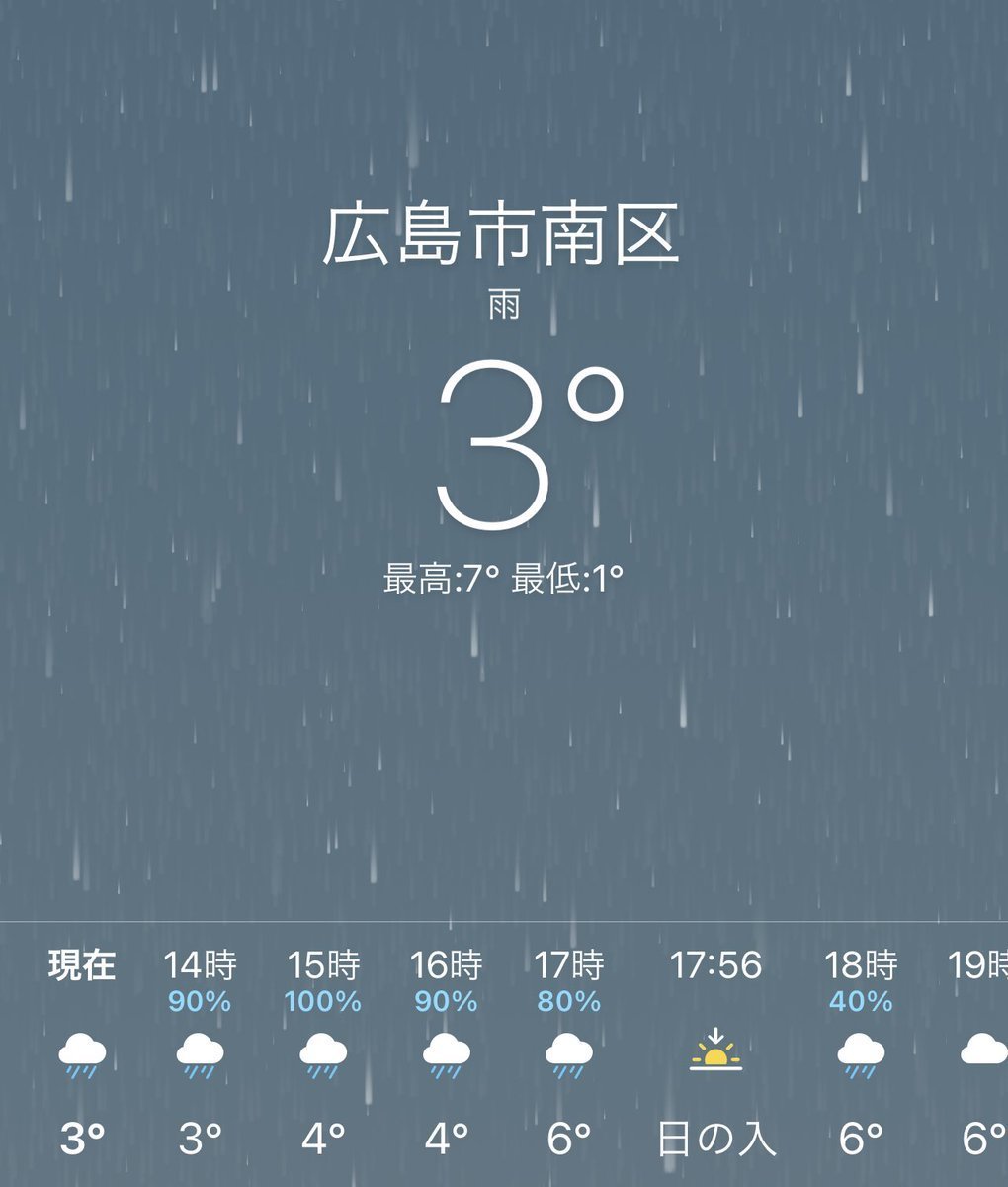 2/19(土)広島市南区の天気は雨☂️またまた寒い日中に逆戻りです💦足元が悪いのでご来店の際はお気をつけくださいませ⚠️