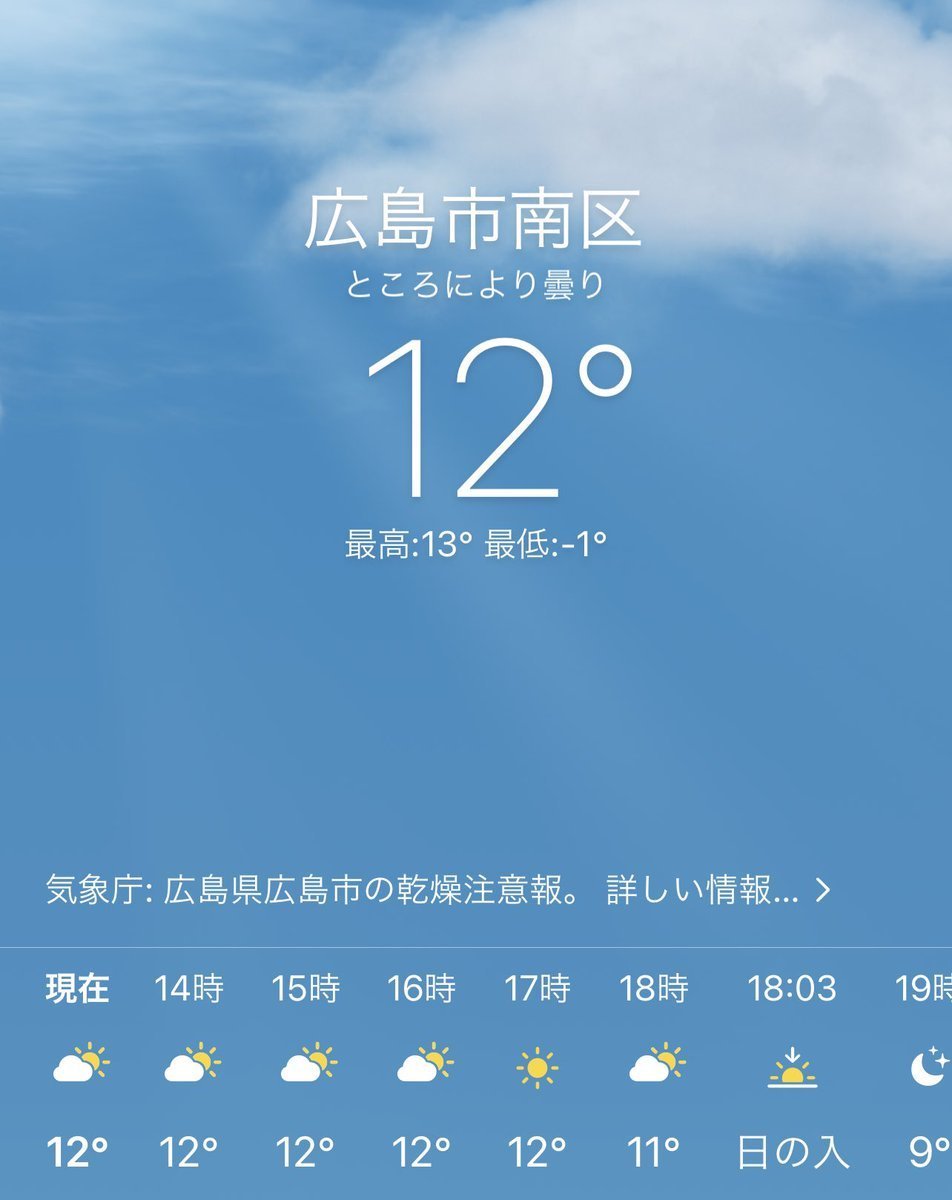 2/26(土)広島市南区の天気は晴れ☀️