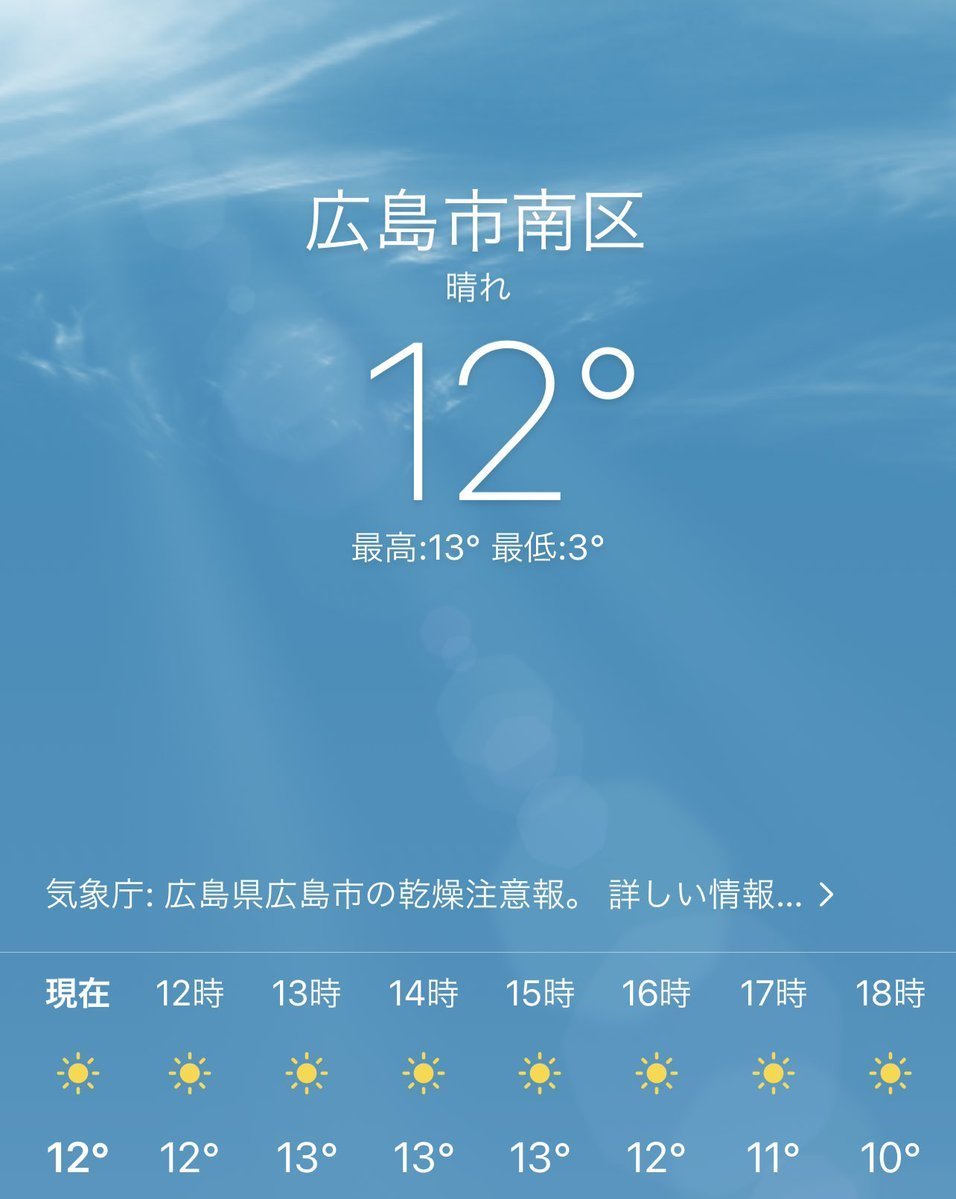 2/27(日)広島市南区の天気は晴れ😄