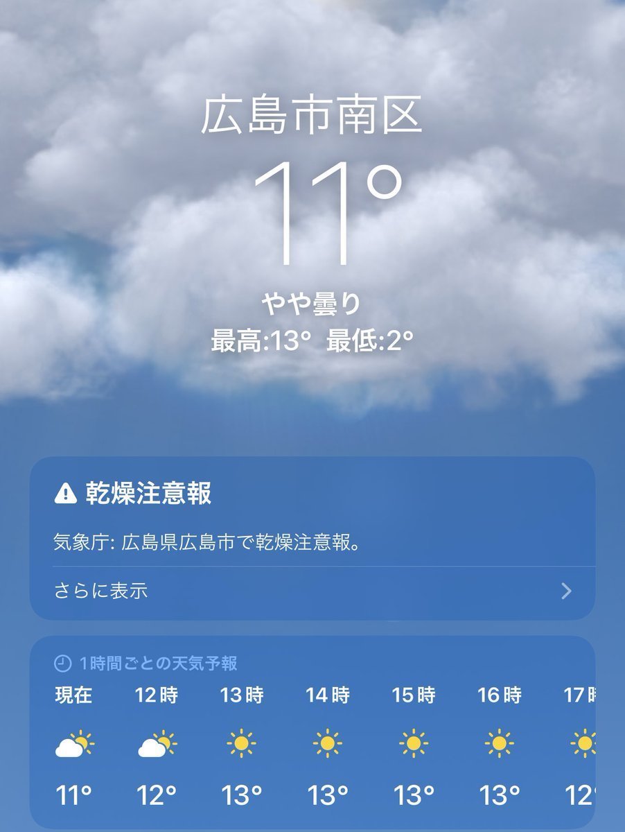 3/3(木)広島市南区の天気は晴れ🙌