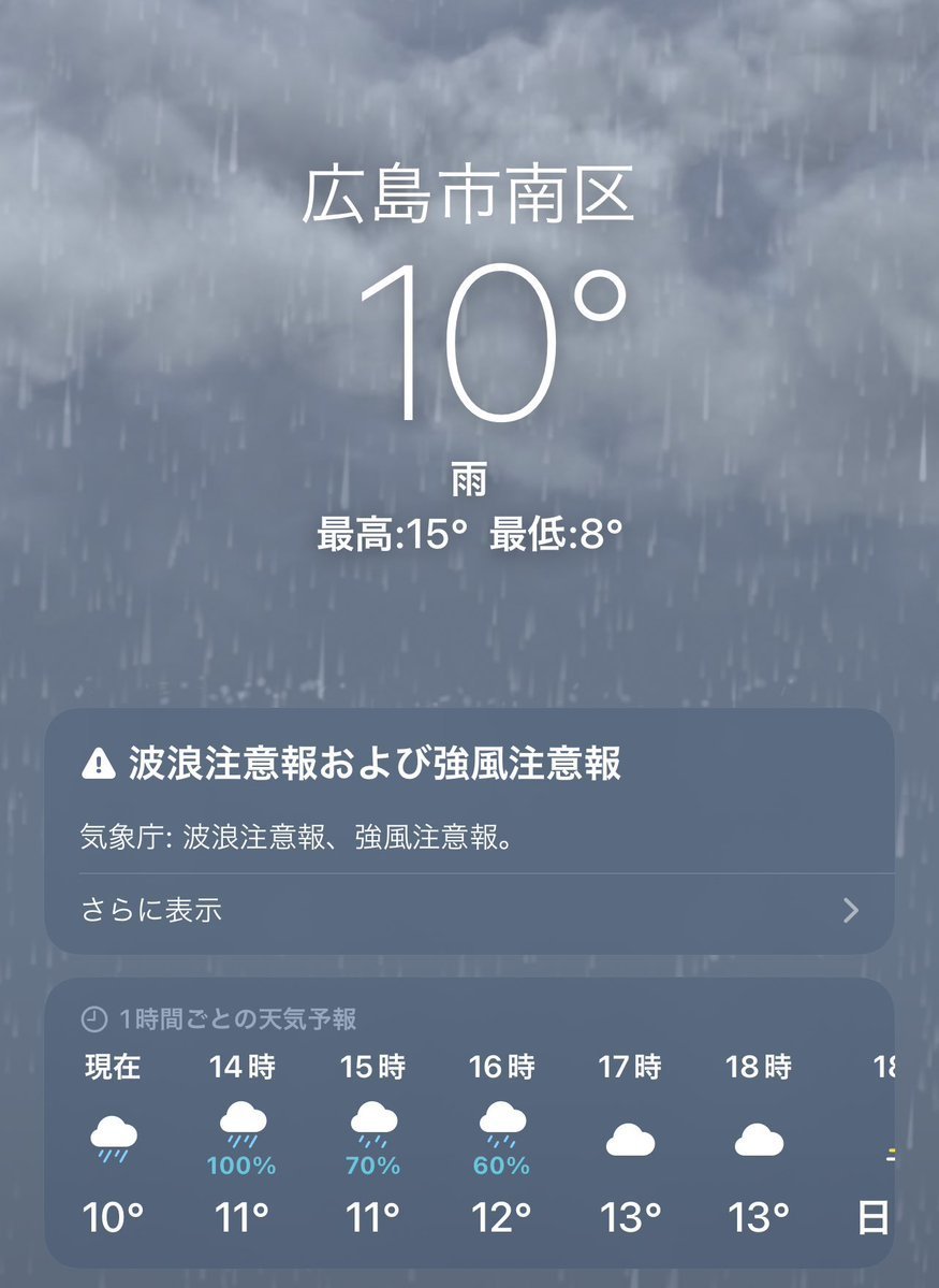 3/18(金)広島市南区の天気は雨☂️久しぶりの雨ですね💦運転をされる方はくれぐれもご注意ください⚠️