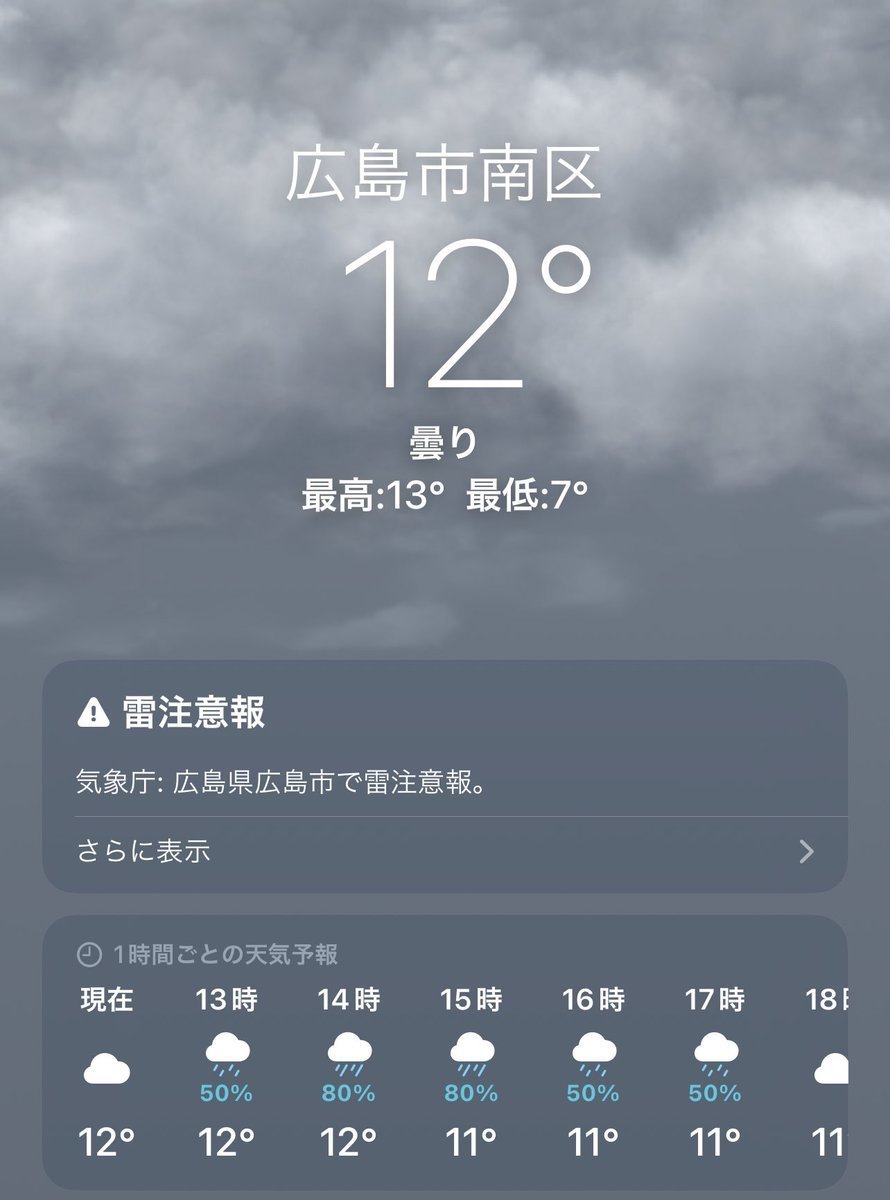 3/19(土)広島市南区の天気は曇りですが雨が降りそうな天気なのでご注意下さい💦
