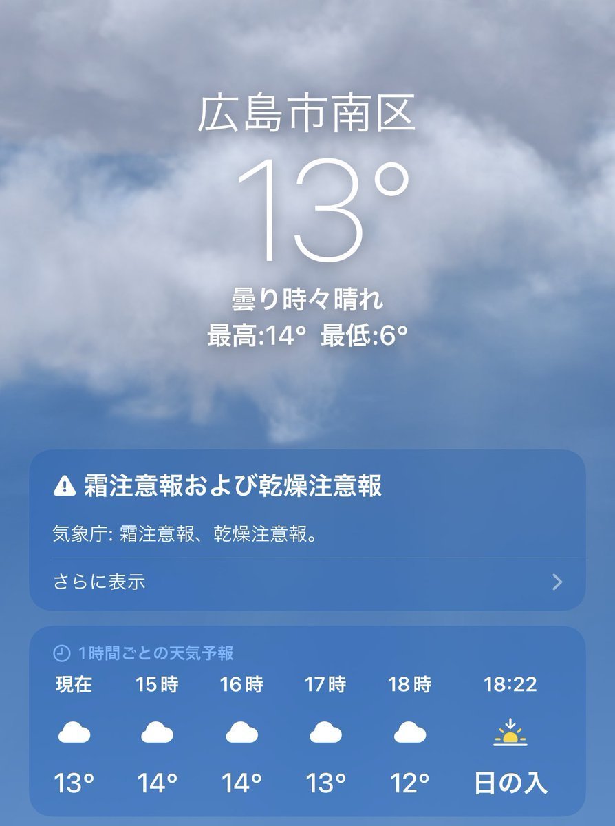 3/22(火)広島市南区の天気は曇り☁️