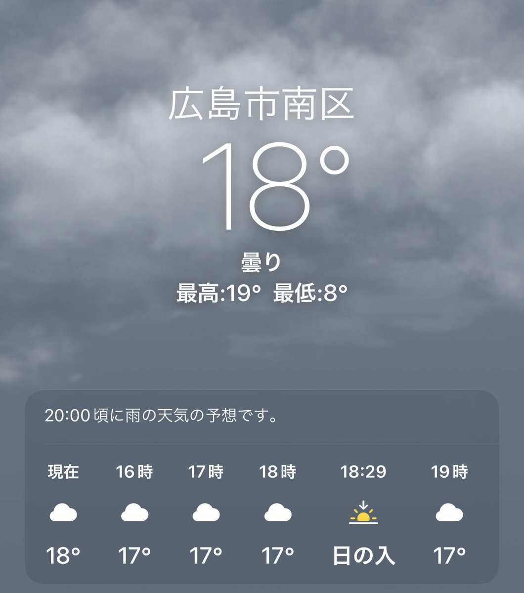 3/30(水)広島市南区の天気は曇り☁️