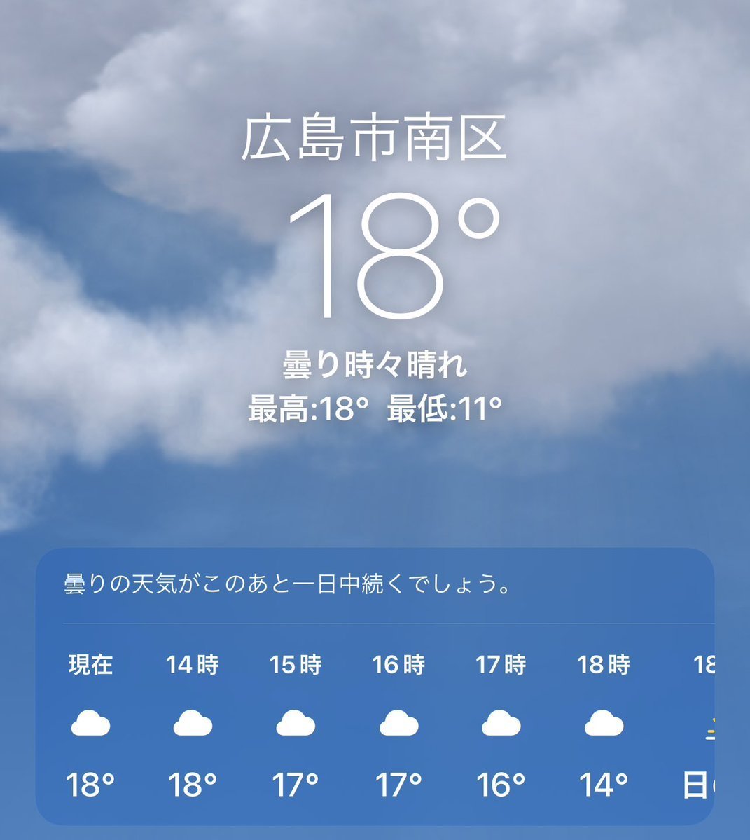 3/31(木)広島市南区の天気は曇り☁️降り続いた雨もようやく止んで空が明るくなってきました😄