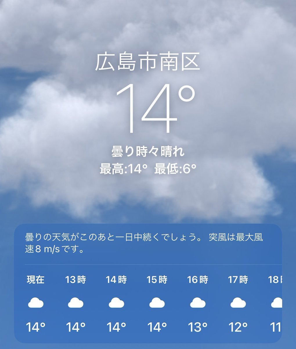 4/1(金)広島市南区の天気は晴れ🙌とても気持ちの良い青空が広がっています😄