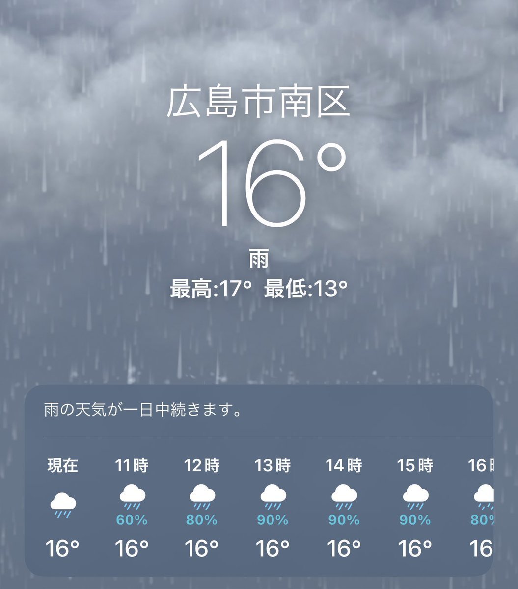 4/21(木)広島市南区の天気は小雨がパラつきだしました💦お出かけの方はご注意くださいね💡