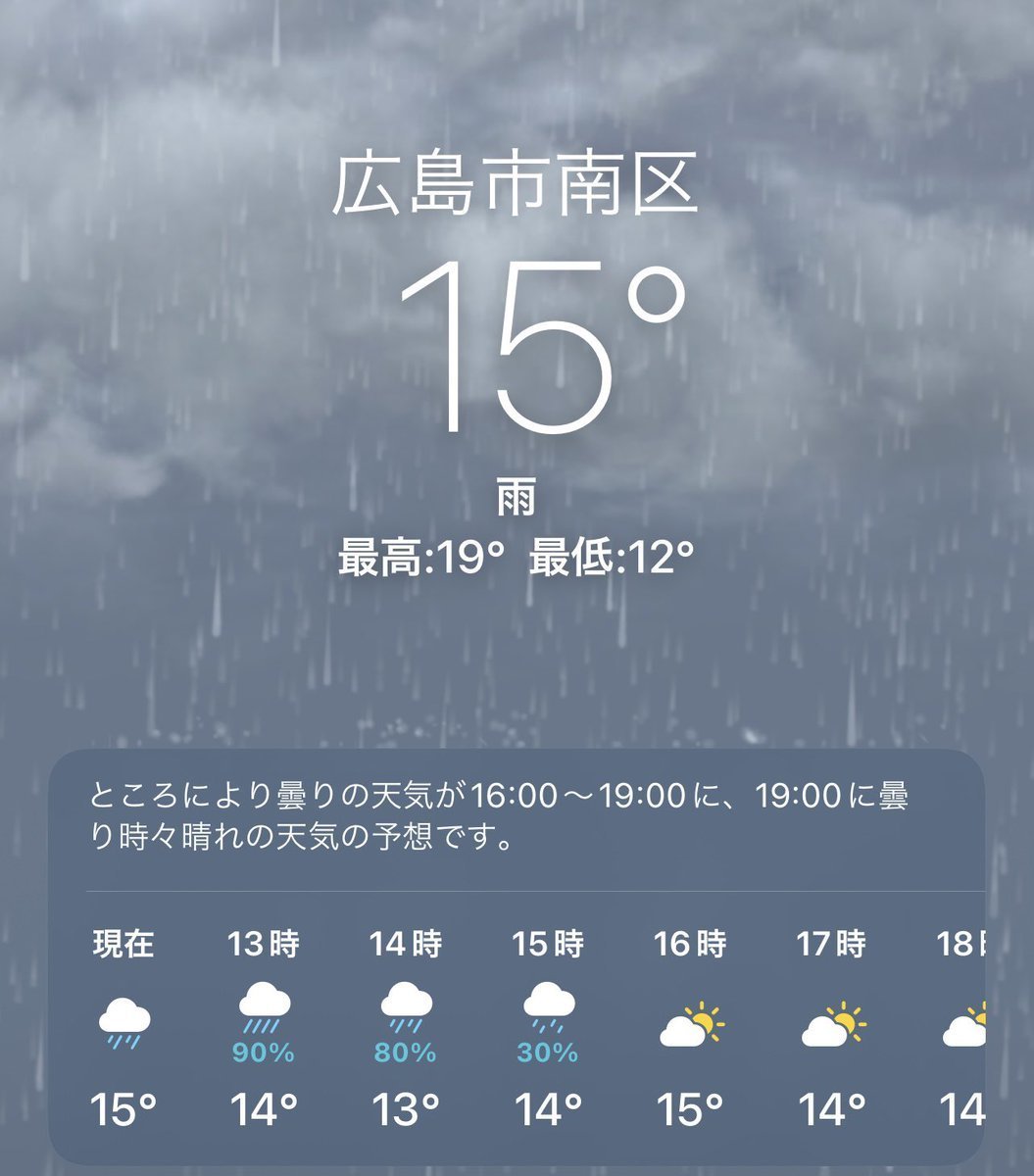 4/29(金祝)広島市南区の天気は雨☔️結構激しく降っております😭せっかくの連休初日になんだよー👊
