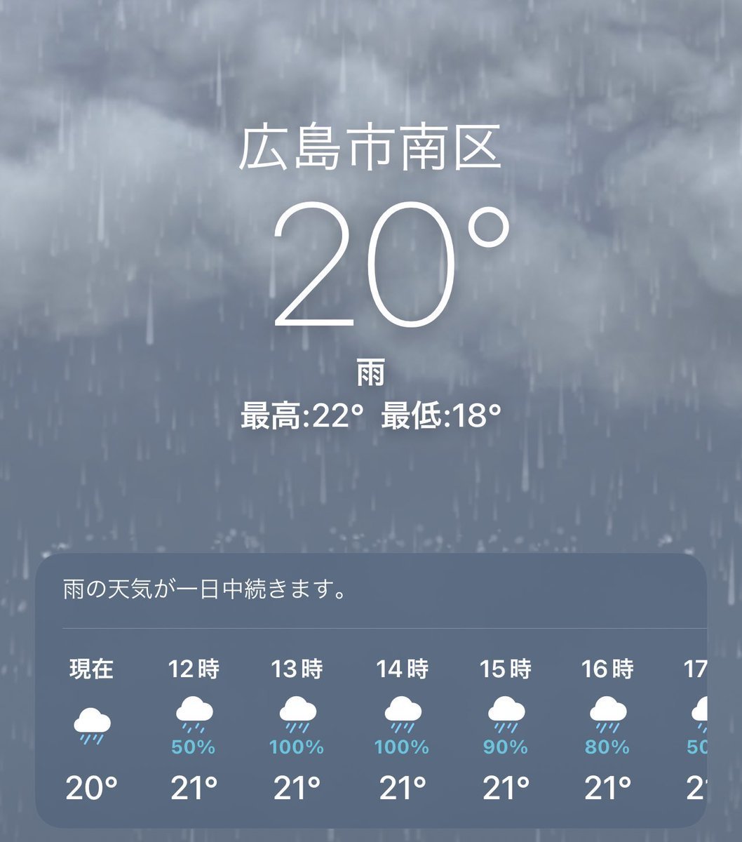 5/12(木)広島市南区の天気は雨☔️今日は一日中降り続くようです💦