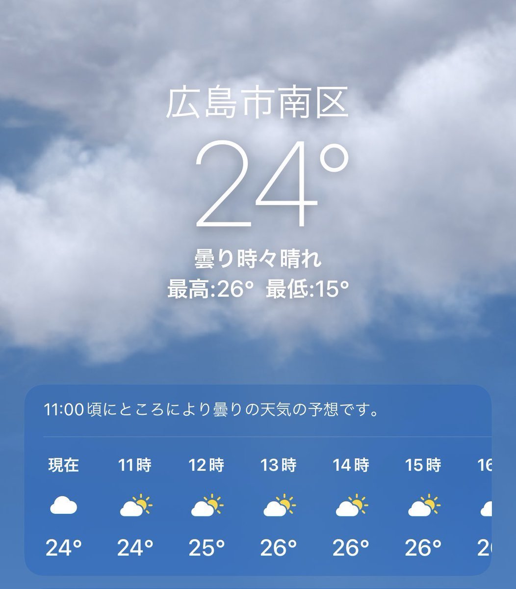 6/9(木)広島市南区の天気は晴れ☀️相変わらず、気持ちの良い朝が迎えられる良い季節です(*´ω`*)