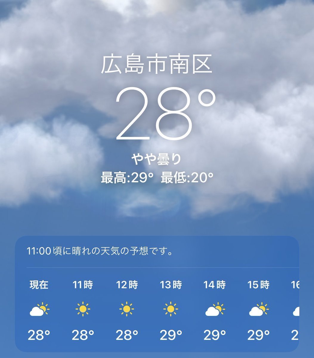 6/17(金)広島市南区の天気は晴れ☀️雲は多いですが、空は明るいので気持ちの良い天気です☺️