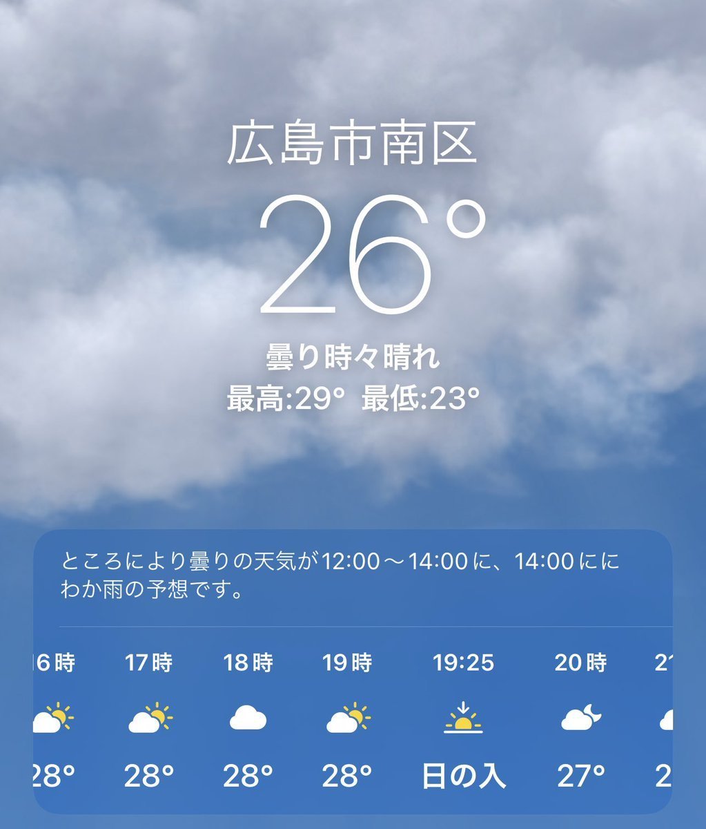 6/22(水)広島市南区の天気は曇り☁️