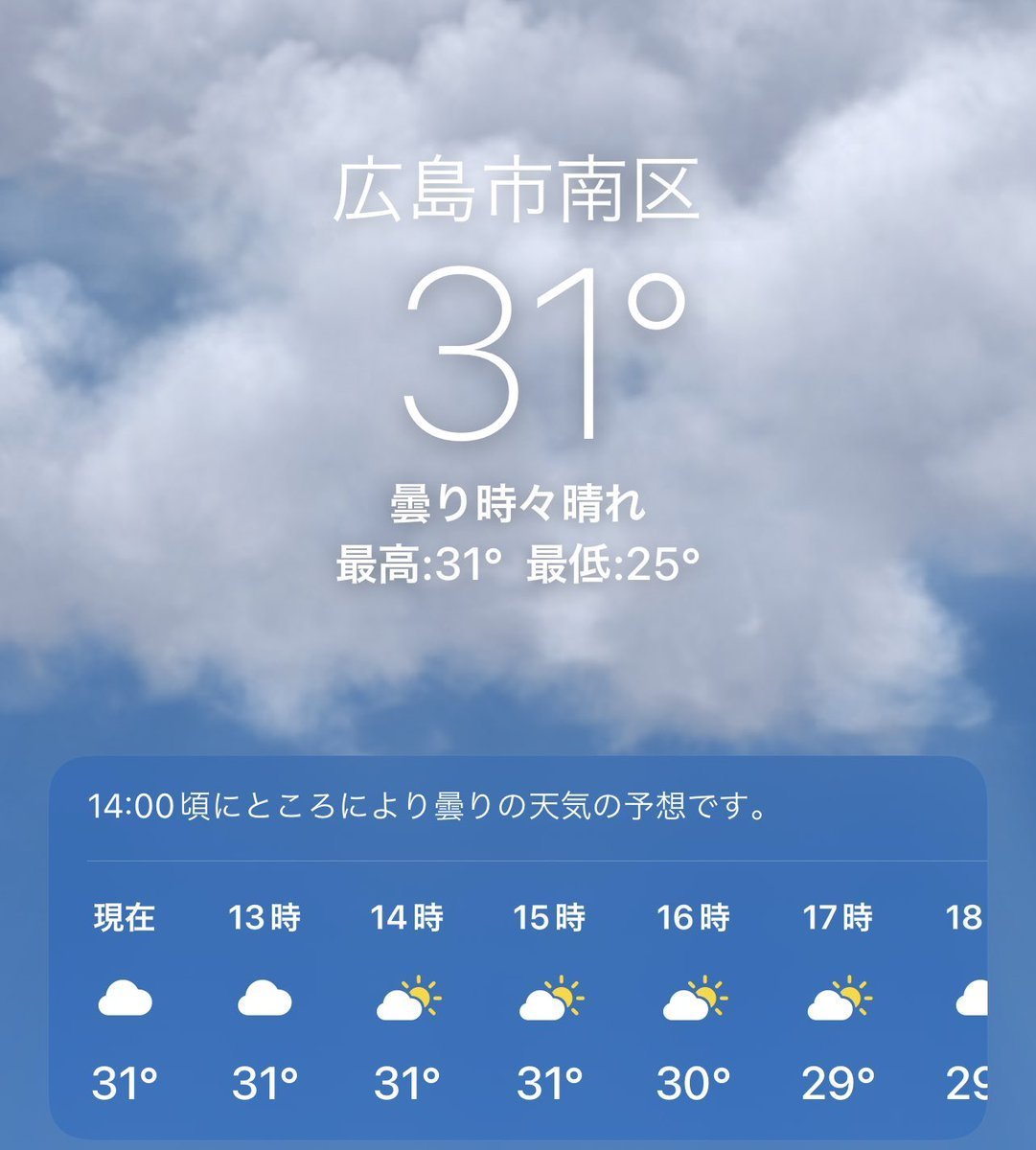 6/28(火)広島市南区の天気は晴れ☀️すでに30°超えで暑すぎる💦