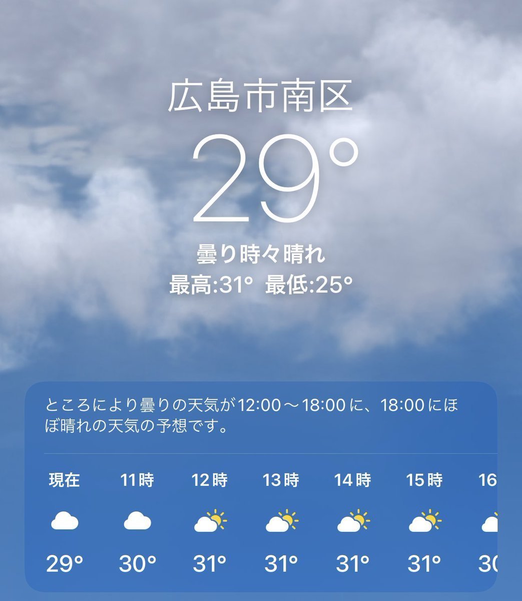 6/29(水)広島市南区の天気は快晴☀️すでに暑いです💦