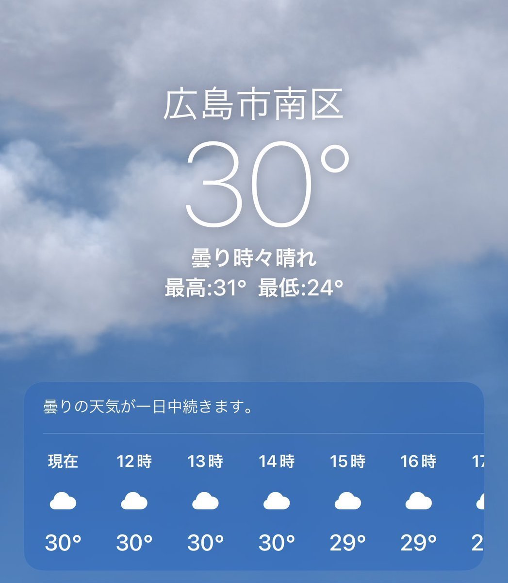 7/3(日)広島市南区の天気は曇り☁️涼しく快適な天気です‼️