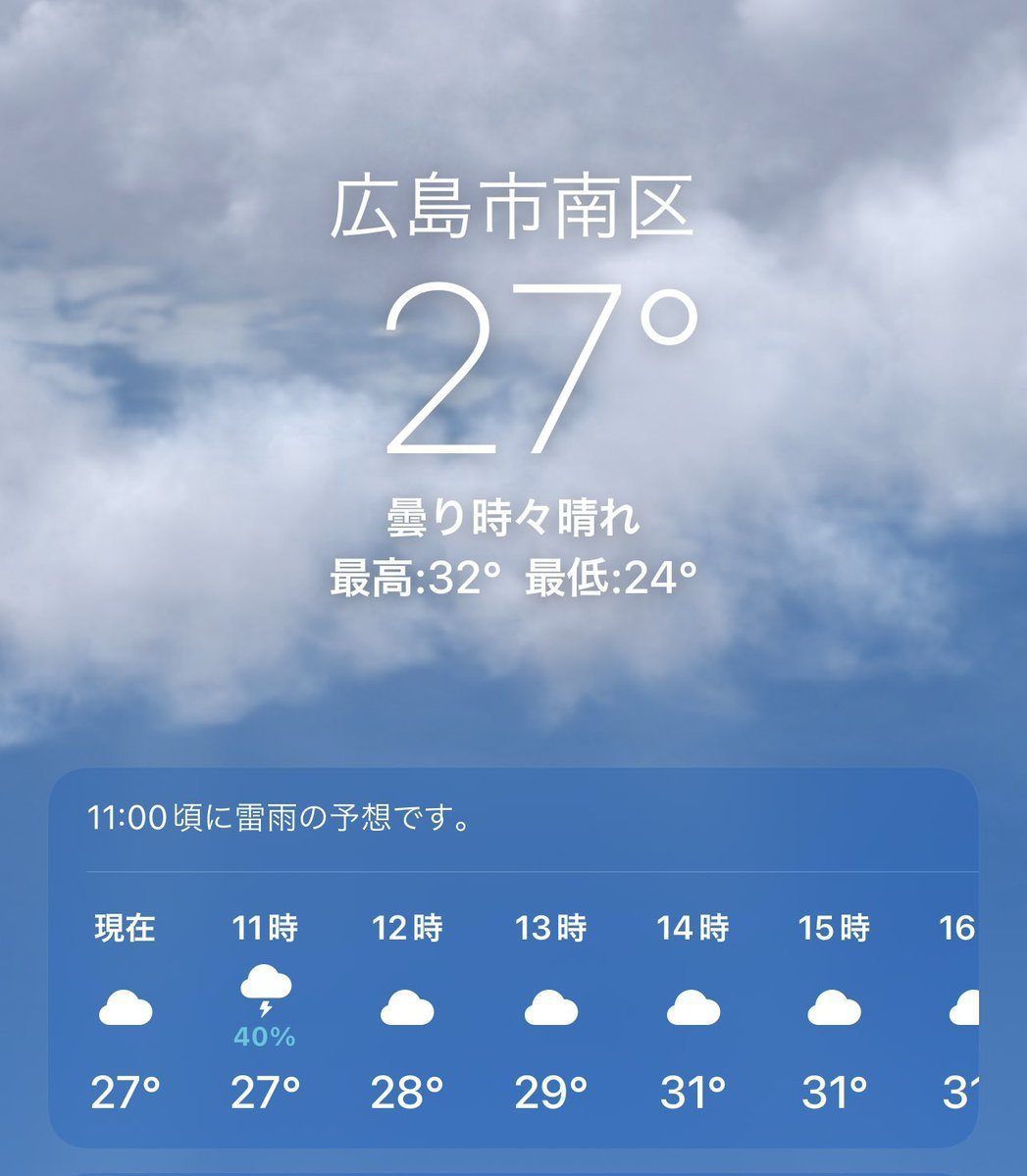 7/12(火)広島市南区の天気は、さっきまで雨でしたがちょうど止みました☔️朝からザッっと降って変なお天気🤔