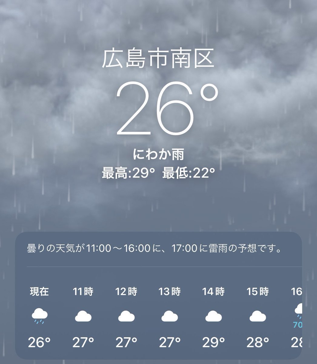7/18(月祝)広島市南区の天気は雨☔️小雨ですけど降ったり止んだり🤔そんな三連休最終日ですねー(*´ω`*)