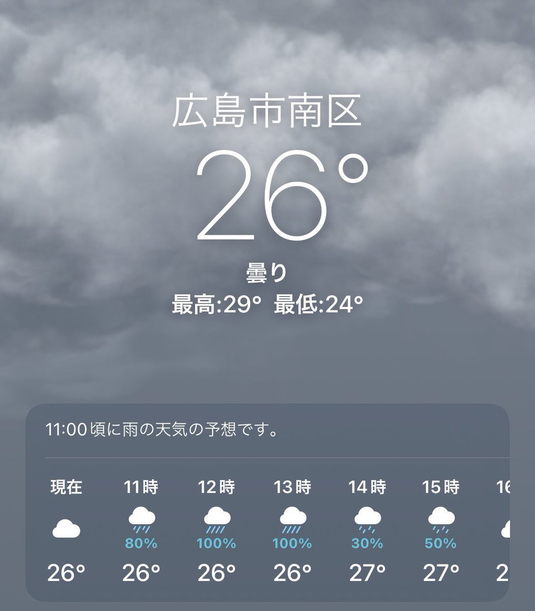 7/19(火)広島市南区の天気は雨です☔️昨晩から大雨注意報が出続けています💦