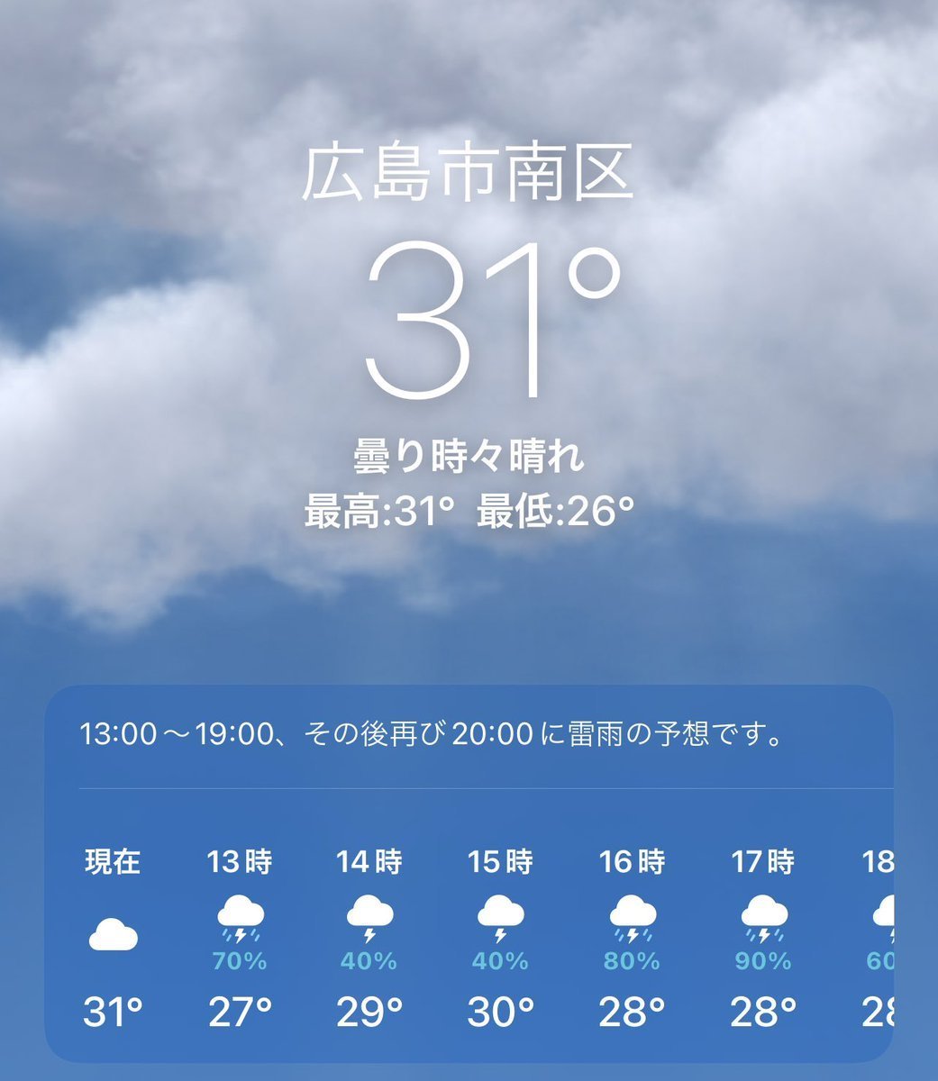 8/6(土)広島市南区の天気は晴れ☀️本日は #広島原爆の日 です。朝からみんなで黙祷を捧げました。今の平和に感謝して、毎日を大切に過ごさないとなとあらためて思わされます。