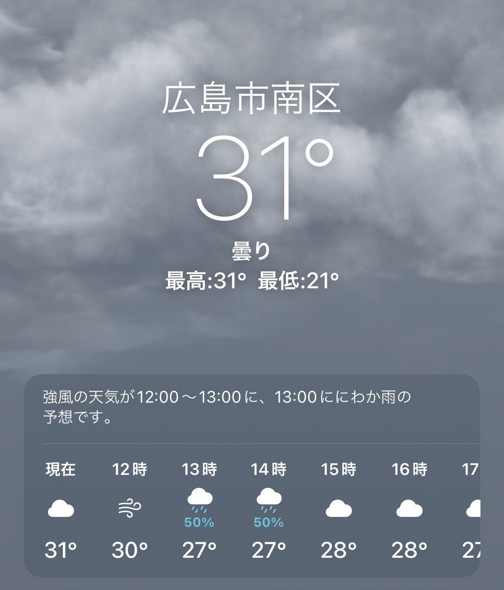 9/6(火)広島市南区の天気は曇りですが台風の影響で大変強い風🌀