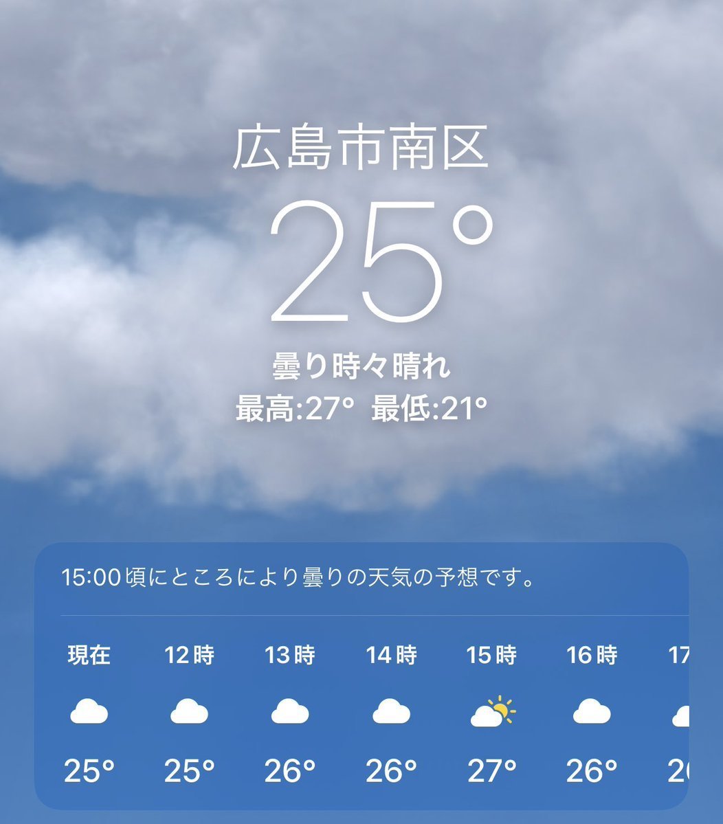 9/29(木)広島市南区の天気は曇り☁️
