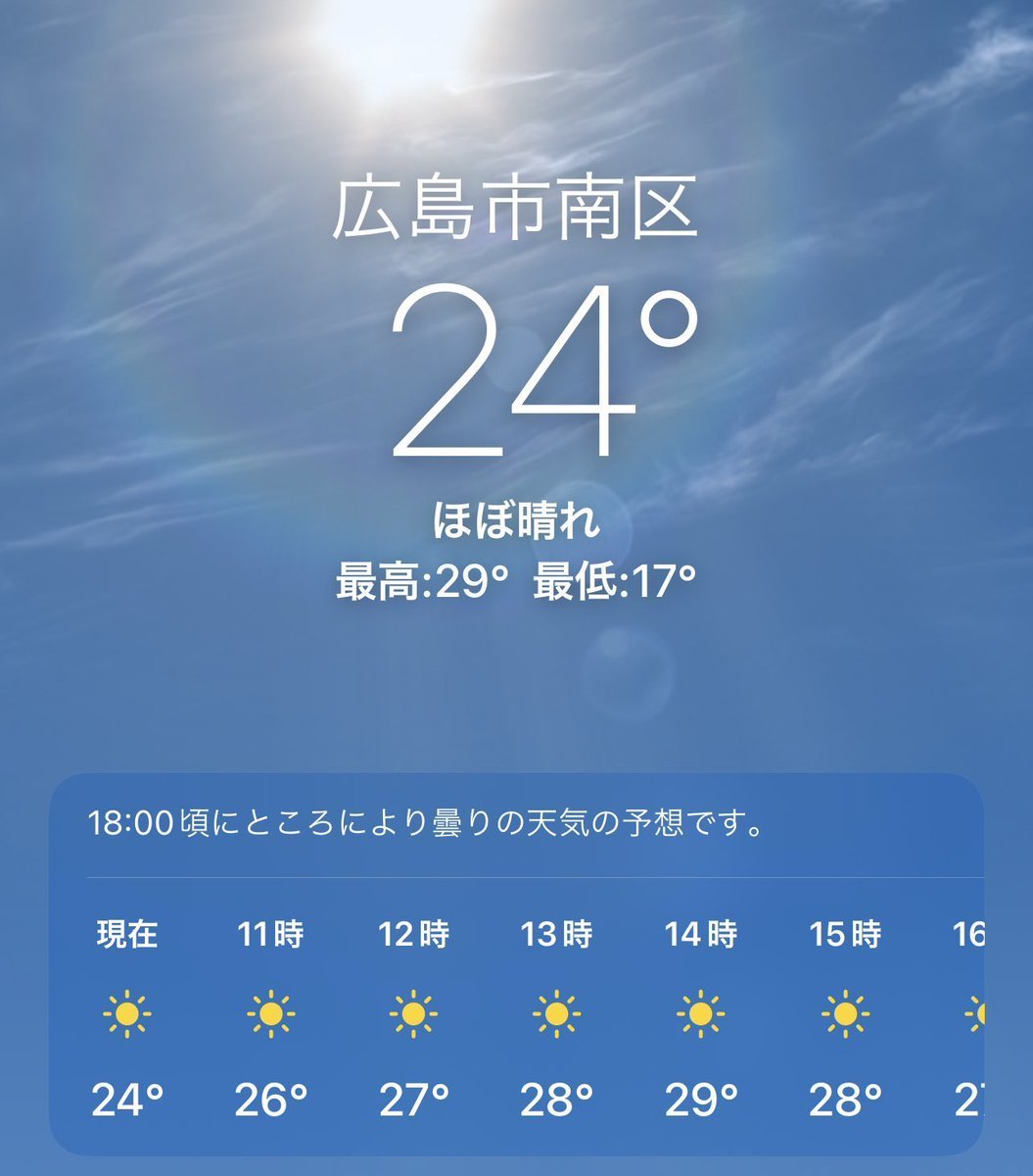 10/1(土曜)広島市南区の天気は晴れ‼️気持ちの良い土曜日の朝です😄