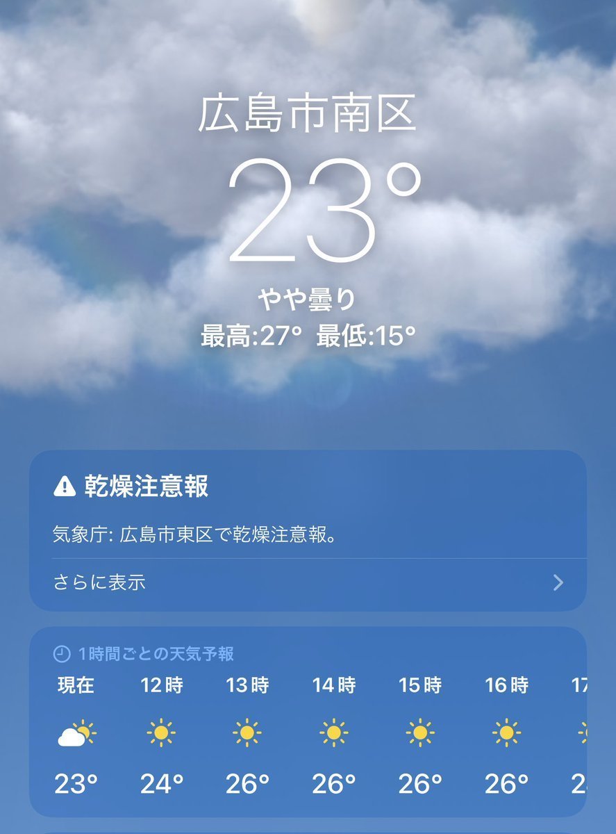 10/15(土)広島市南区の天気は晴れ☀️良いお天気すぎて暑いくらい💦
