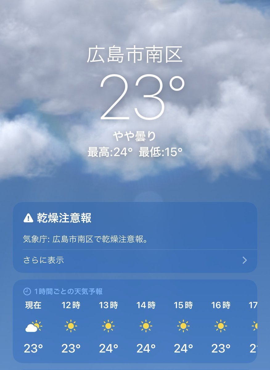 10/23(日)広島市南区の天気は晴れてます☀️日差しが強くて暑いくらい💦