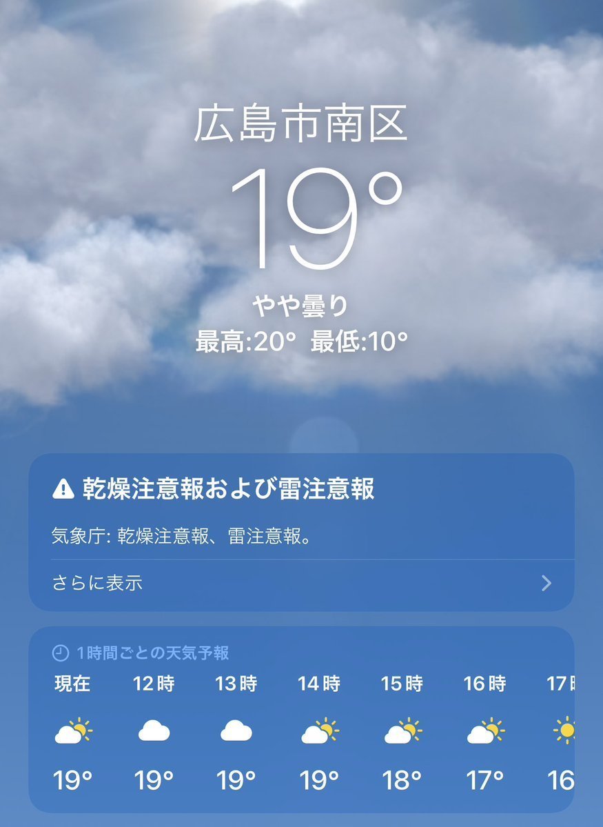 10/24(月)広島市南区の天気は曇り☁️