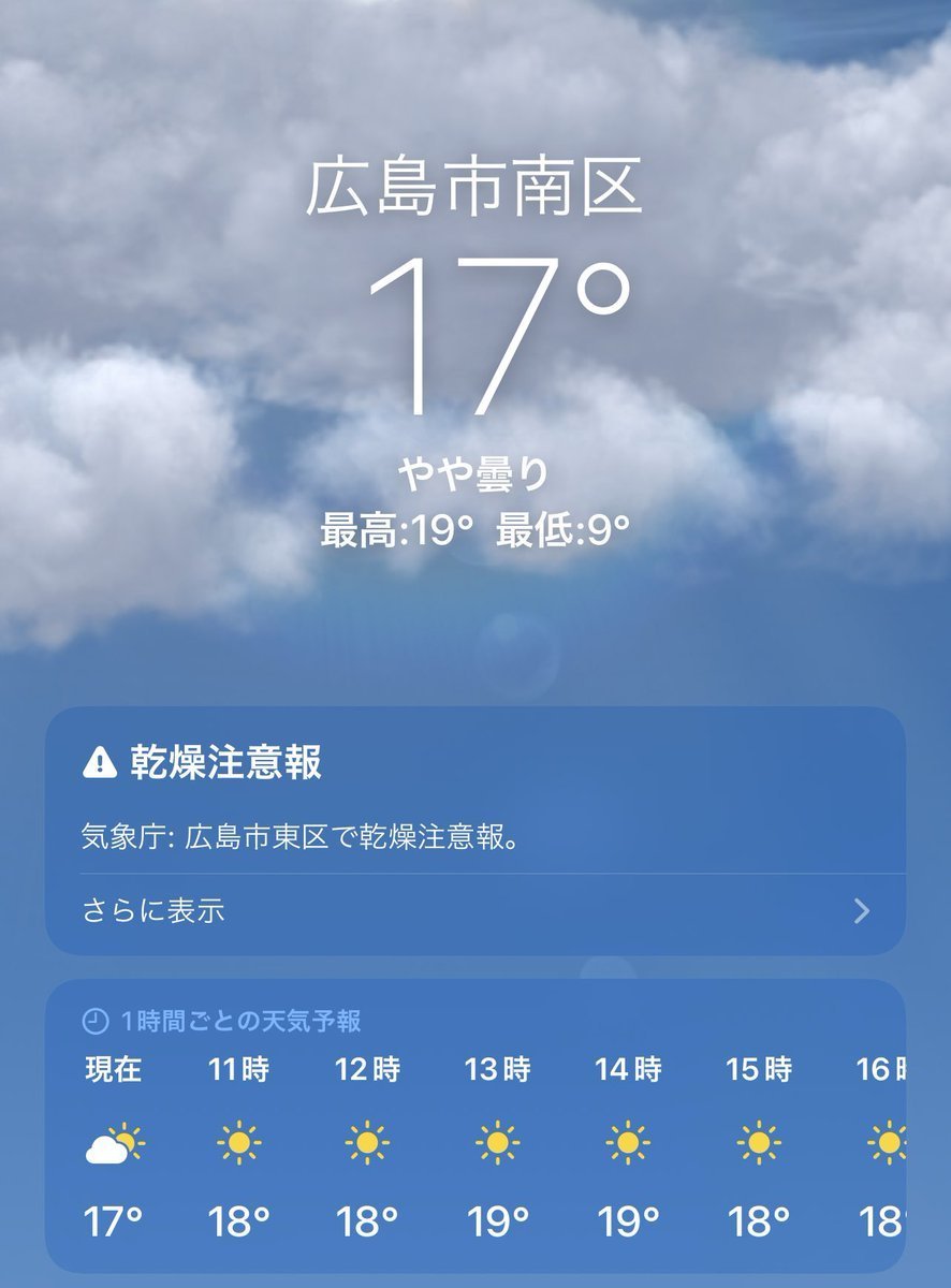 10/25(火)広島市南区の天気は晴れ☀️