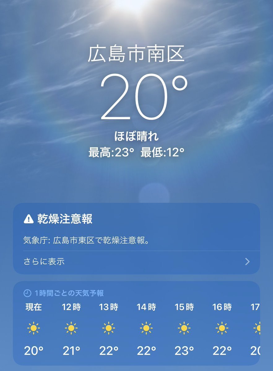11/3(木)広島市南区の天気は晴れ☀️20°という事で外は気持ちの良い気温で過ごしやすい(*´ω`*)