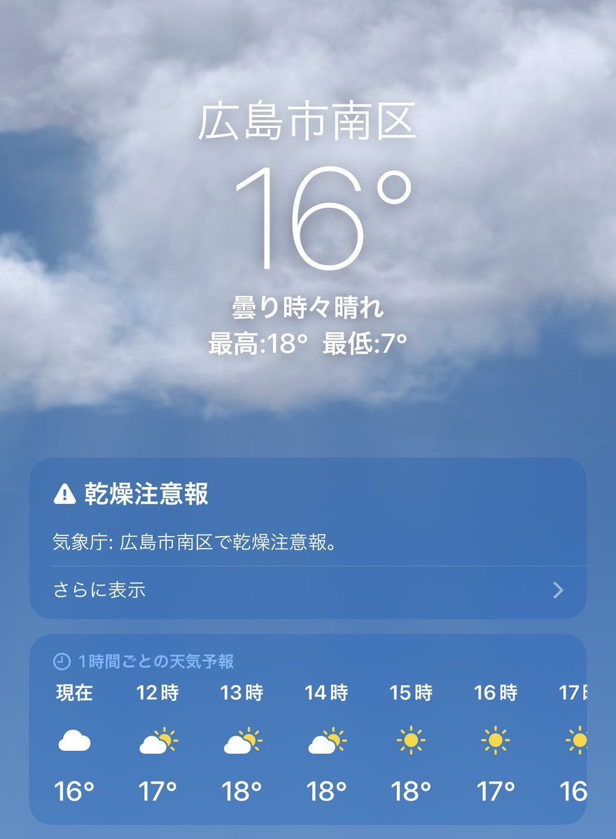 11/15(火)広島市南区の天気は晴れ☀️