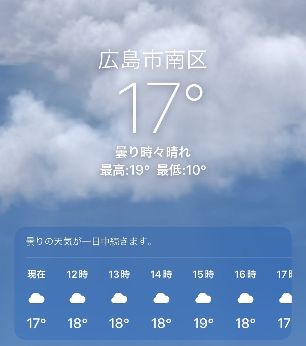 11/22(火)広島市南区の天気は曇り☁️