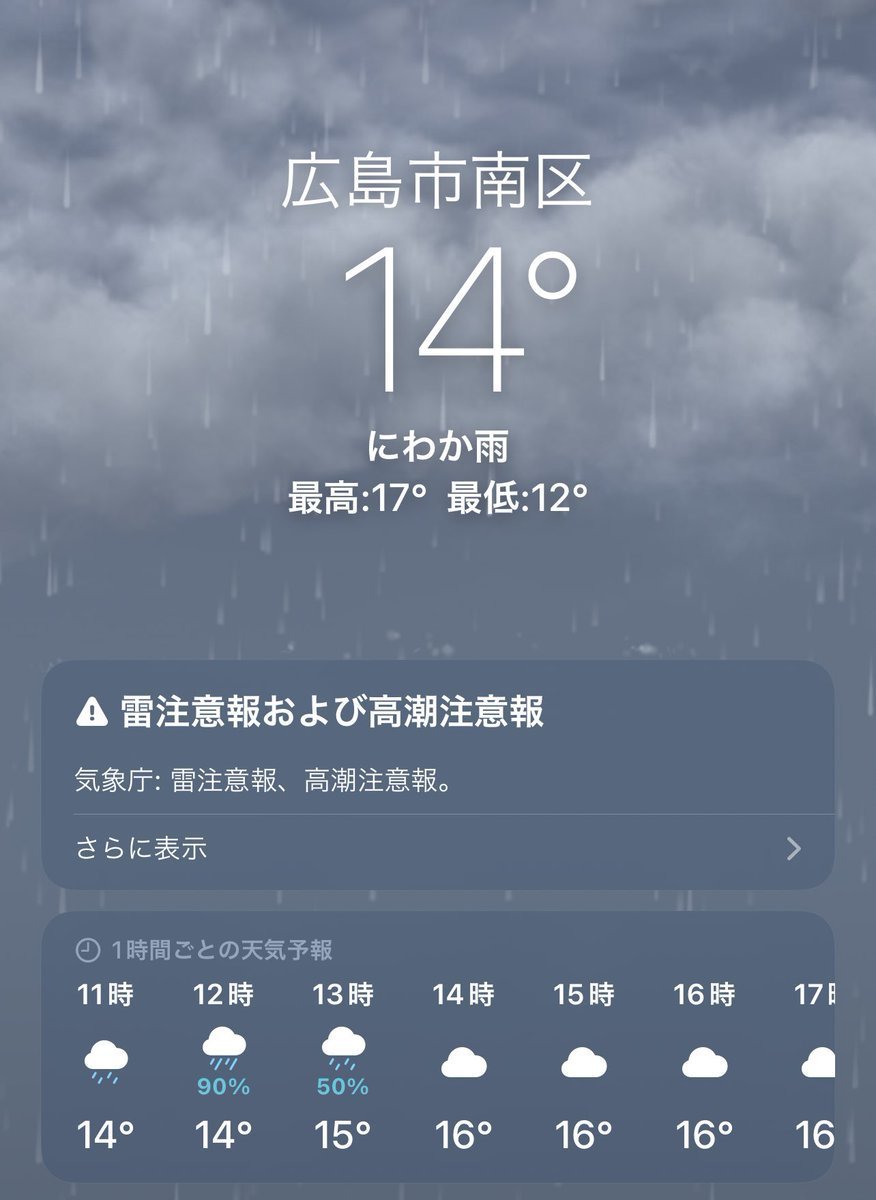 11/23(水)広島市南区の天気は雨☔️