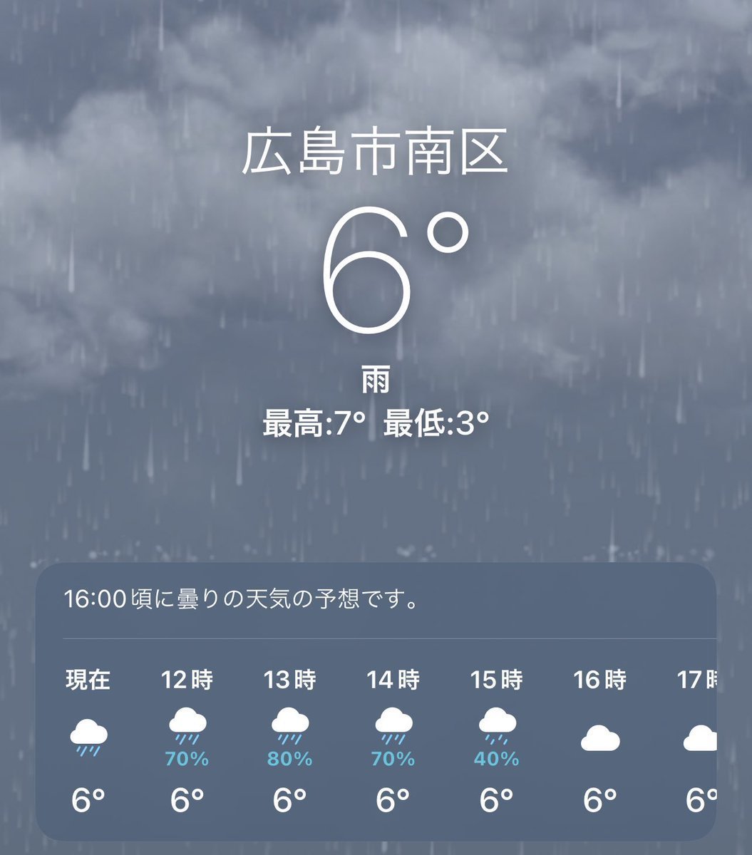 12/17(土)広島市南区の天気は雨☔️