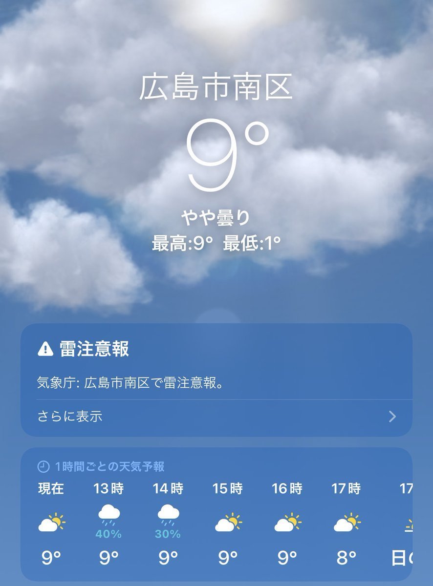 1/7(土)広島市南区の天気は曇り☁️