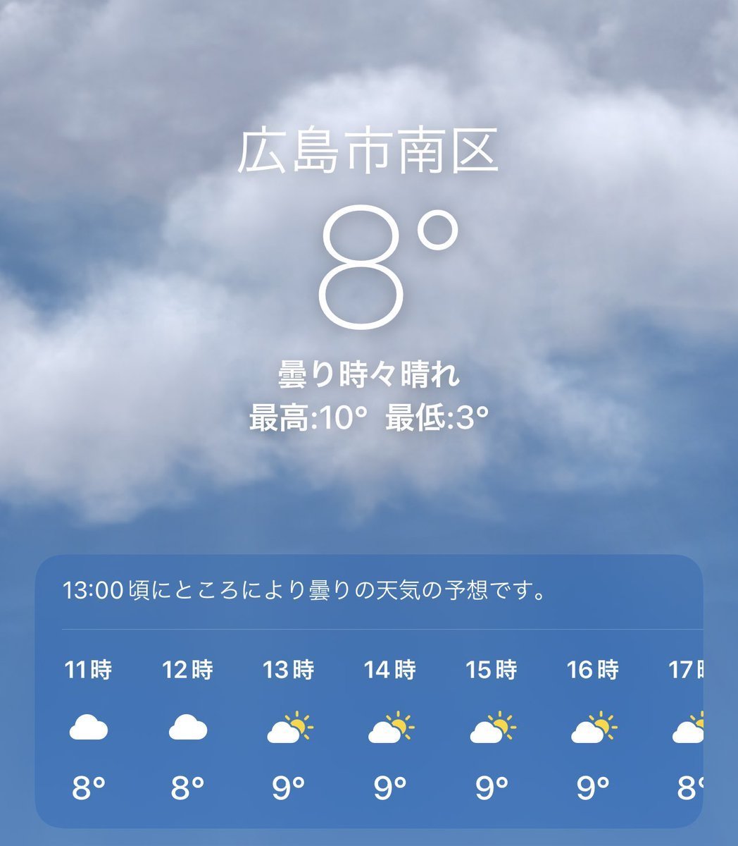 1/18(水)広島市南区の天気は曇り☁️