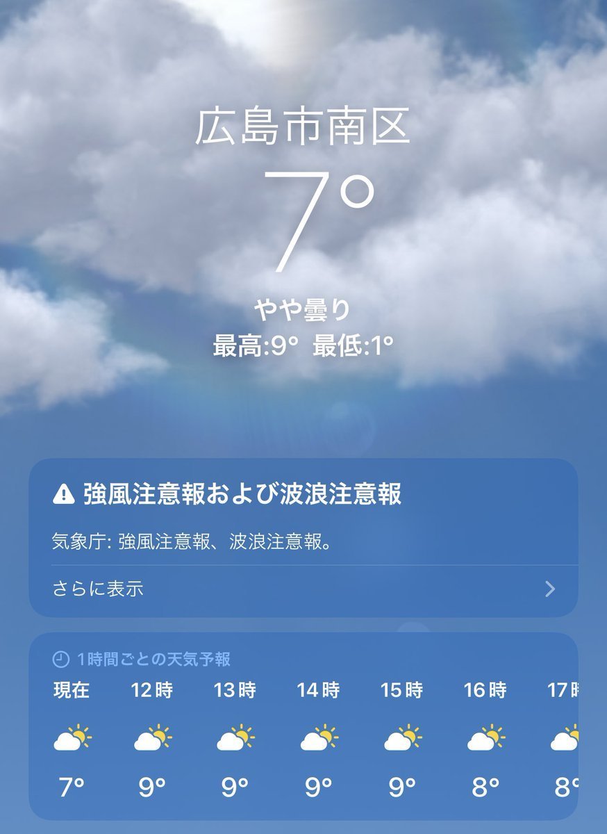 1/20(金)広島市南区の天気は晴れ☀️