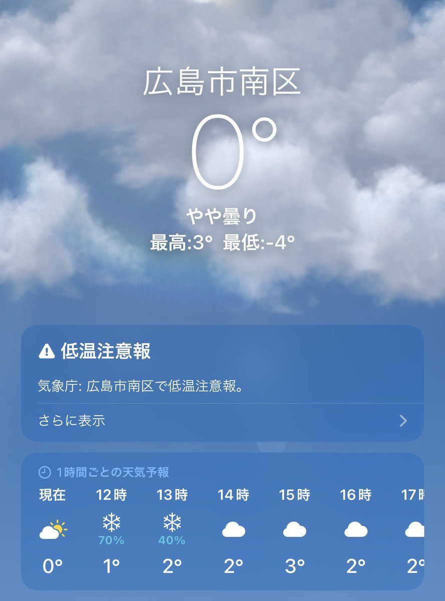 1/25(水)広島市南区の天気は晴れ☀️ですが、昨晩降った雪がまだうっすら積もっている南区元宇品です⛄️