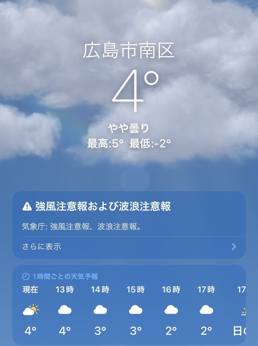 1/28(土)広島市南区の天気は晴れ☀️