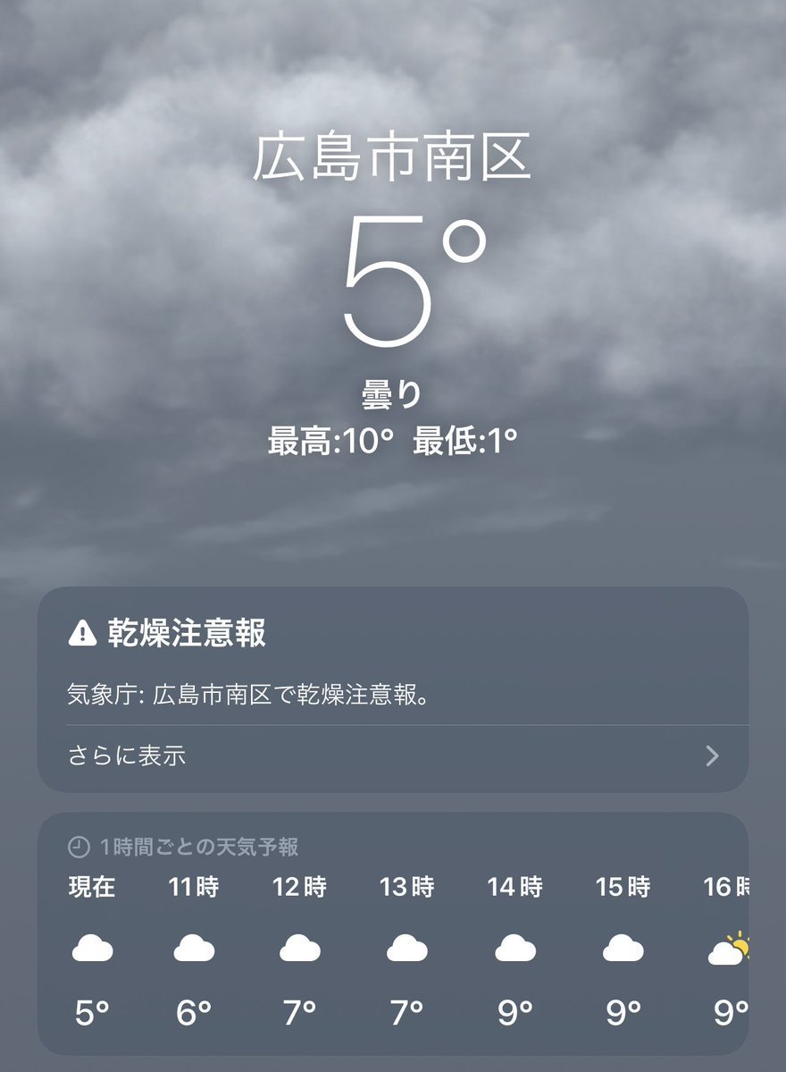 2/3(金)広島市南区の天気は曇り☁️