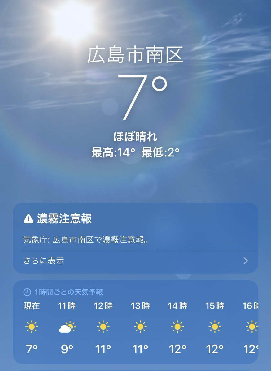 2/8(水)広島市南区の天気は曇り☁️