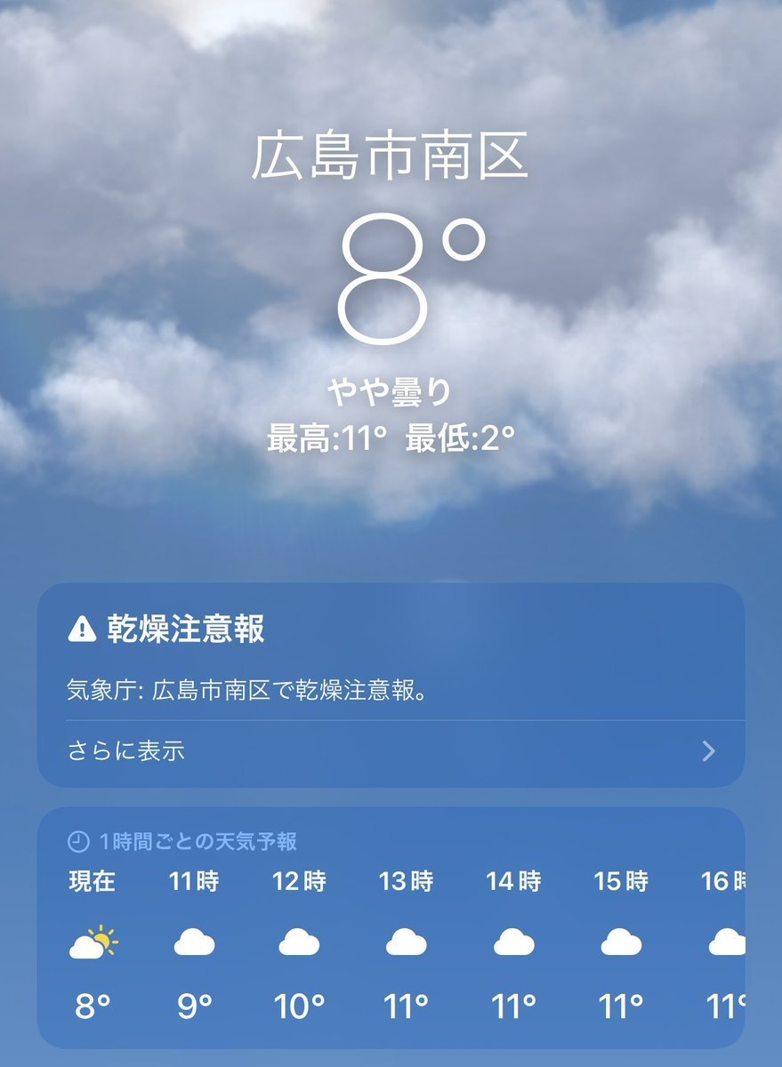 2/9(木)広島市南区の天気は晴れ☀️