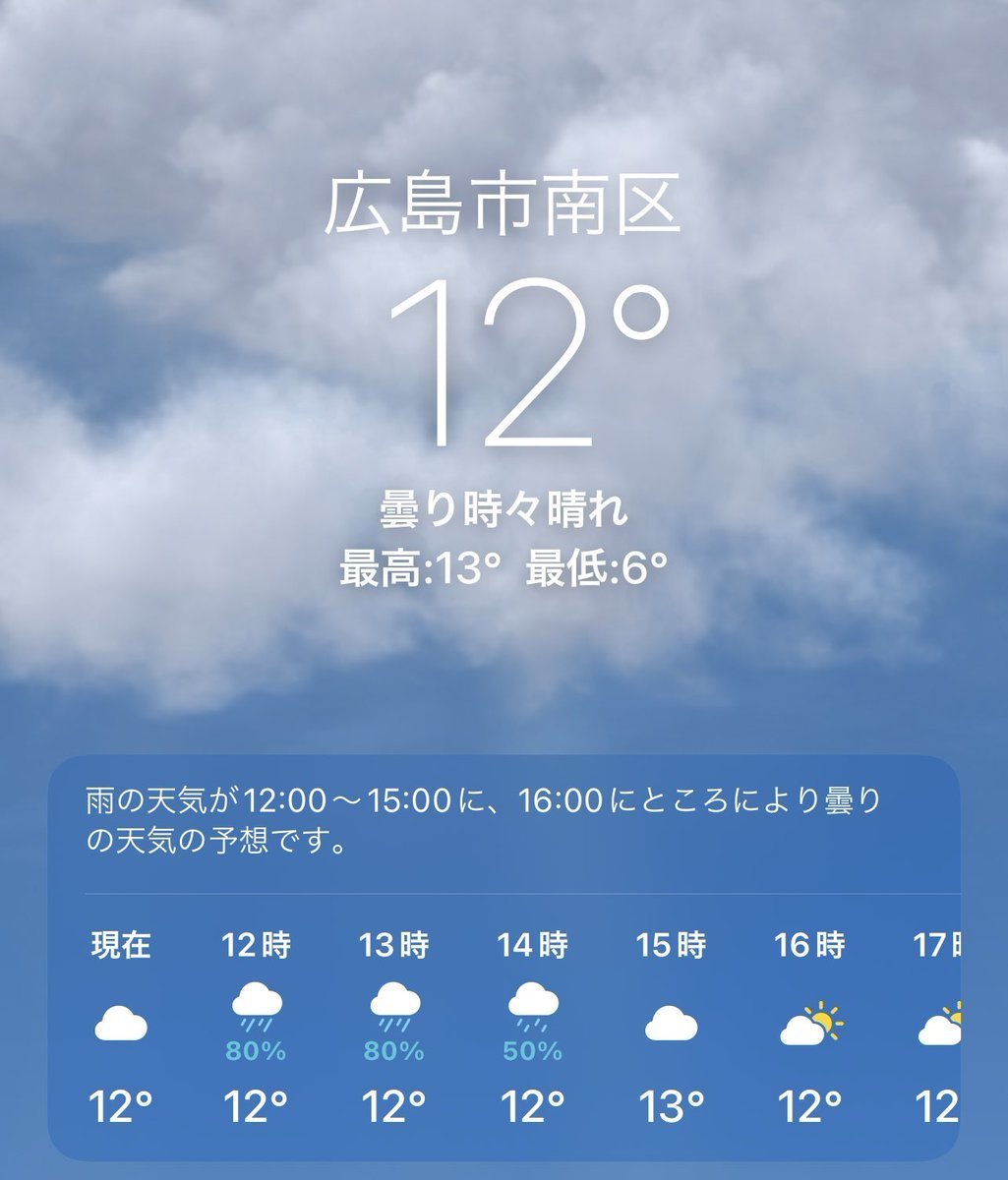 2/19(日)広島市南区の天気は曇り☁️