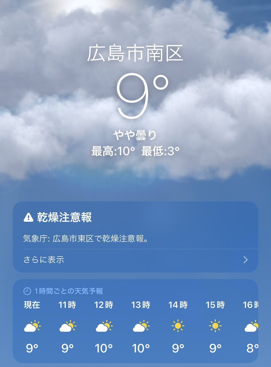2/20(月)広島市南区の天気は曇り☁️