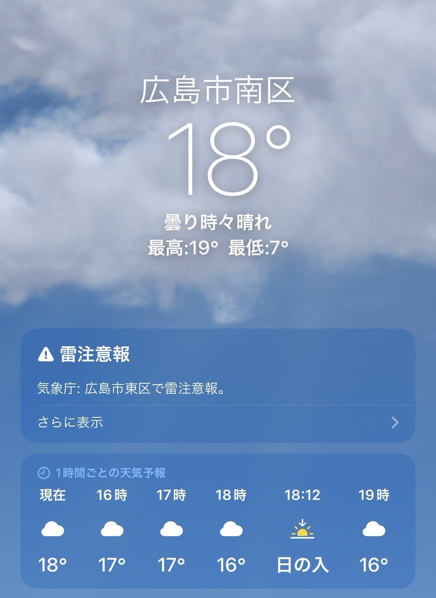 3/9(木)広島市南区の天気は曇り☁️