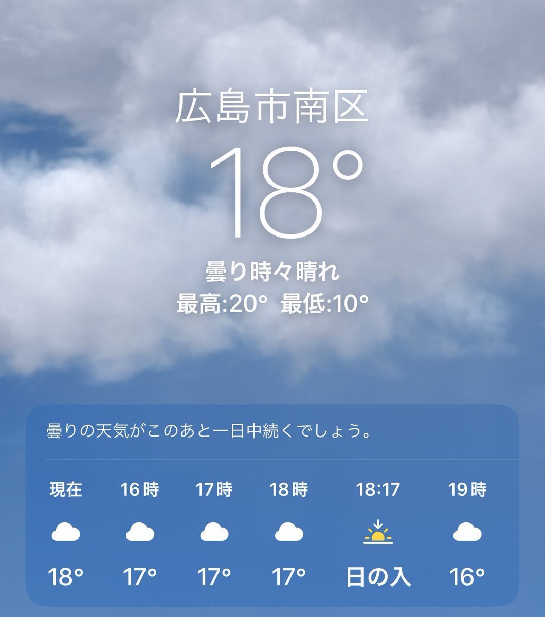 3/16(木)広島市南区の天気は曇り☁️