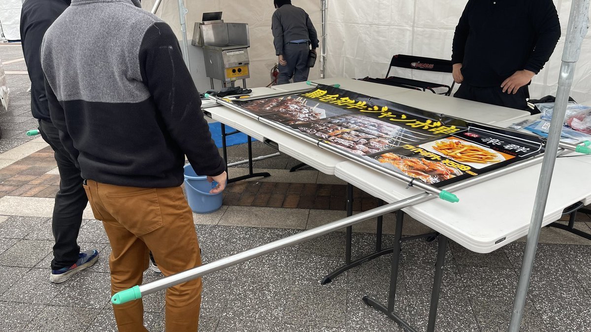 広島みなとフェスタの会場で設営中の社長と店長🙌
